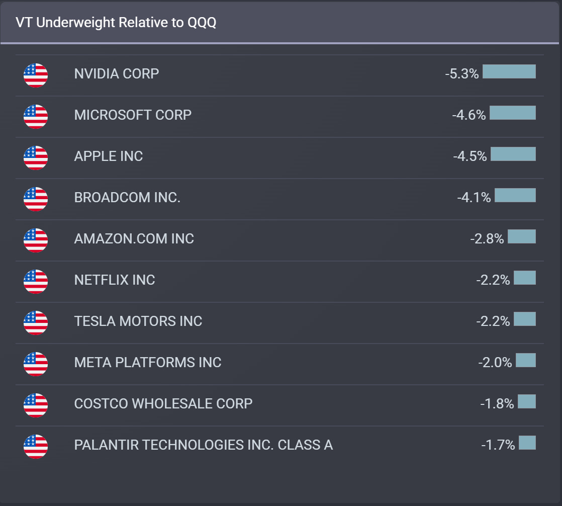 2.2. VT 相對 QQQ 的低配(Underweight)