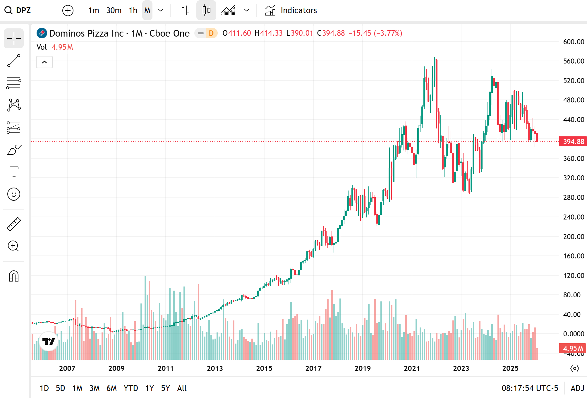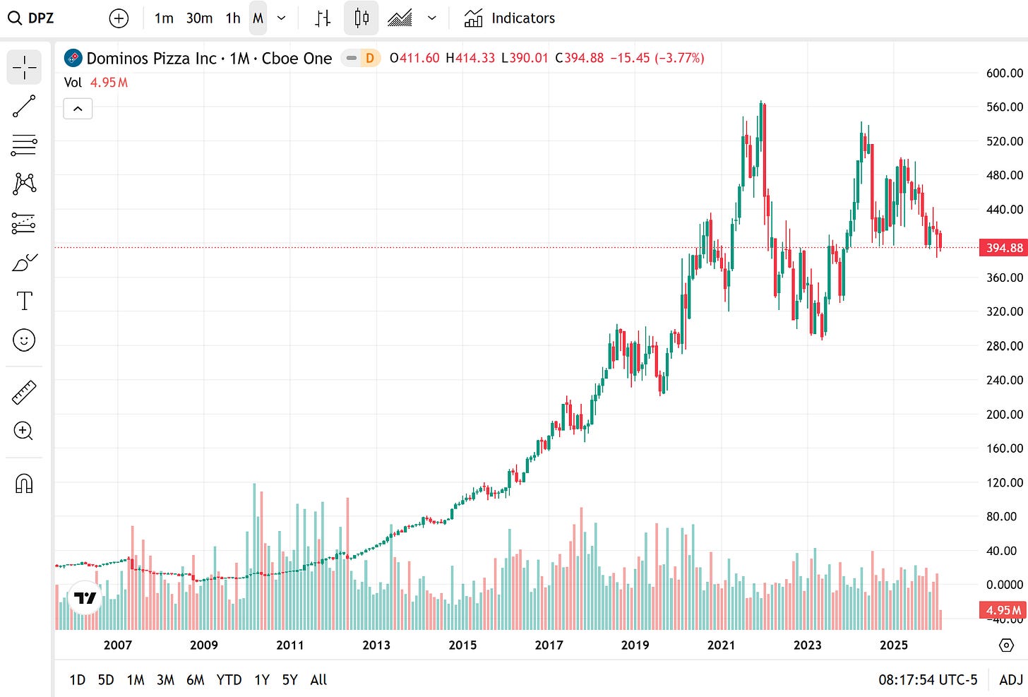 當自動化、AI、平台經濟不斷侵蝕原本的工作與角色,投資不再只是看好某家公司,而是一種防禦。如果這些科技正在改變世界,那至少,我要站在它們那一邊。於是,買進科技巨頭,某種程度上變成一張心理上的保險單。如果我們只看科技類股,大概會錯失達美樂比薩這20年價格漲幅超過20倍。