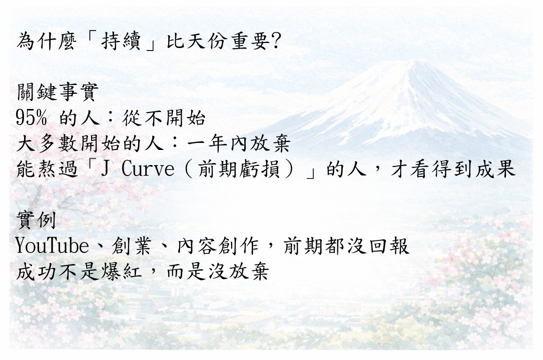 這也是為什麼,「一直創業」有時反而是一種逃避。逃避的是什麼?往往不是市場,而是那段看不到成果、需要耐心撐住的累積期。
