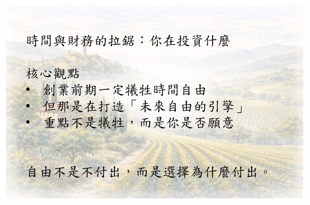 所以我常提醒自己,重點不是現在累不累,而是有沒有意識到,我正在把時間投資在哪一種人生版本上。真正的自由:我知道自己選擇為什麼付出。