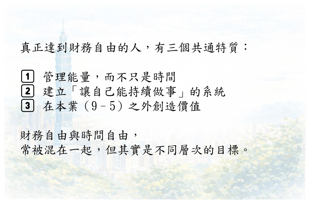 很多人談「財務自由」,第一個聯想到的,往往是不用上班、時間很多、想幹嘛就幹嘛。但其實現在的每一個選擇,其實都在投資某一種未來。