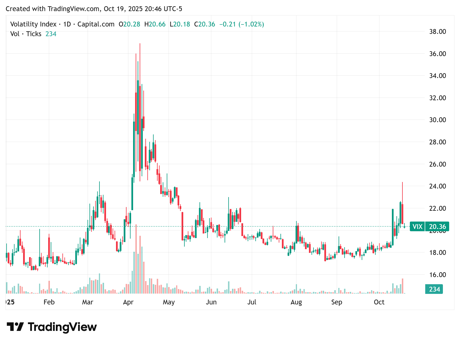 VIX 的中度上升意味投資人開始重新評估估值與宏觀風險。這常出現在利率政策模糊、地緣衝突升溫、或財報期前後。