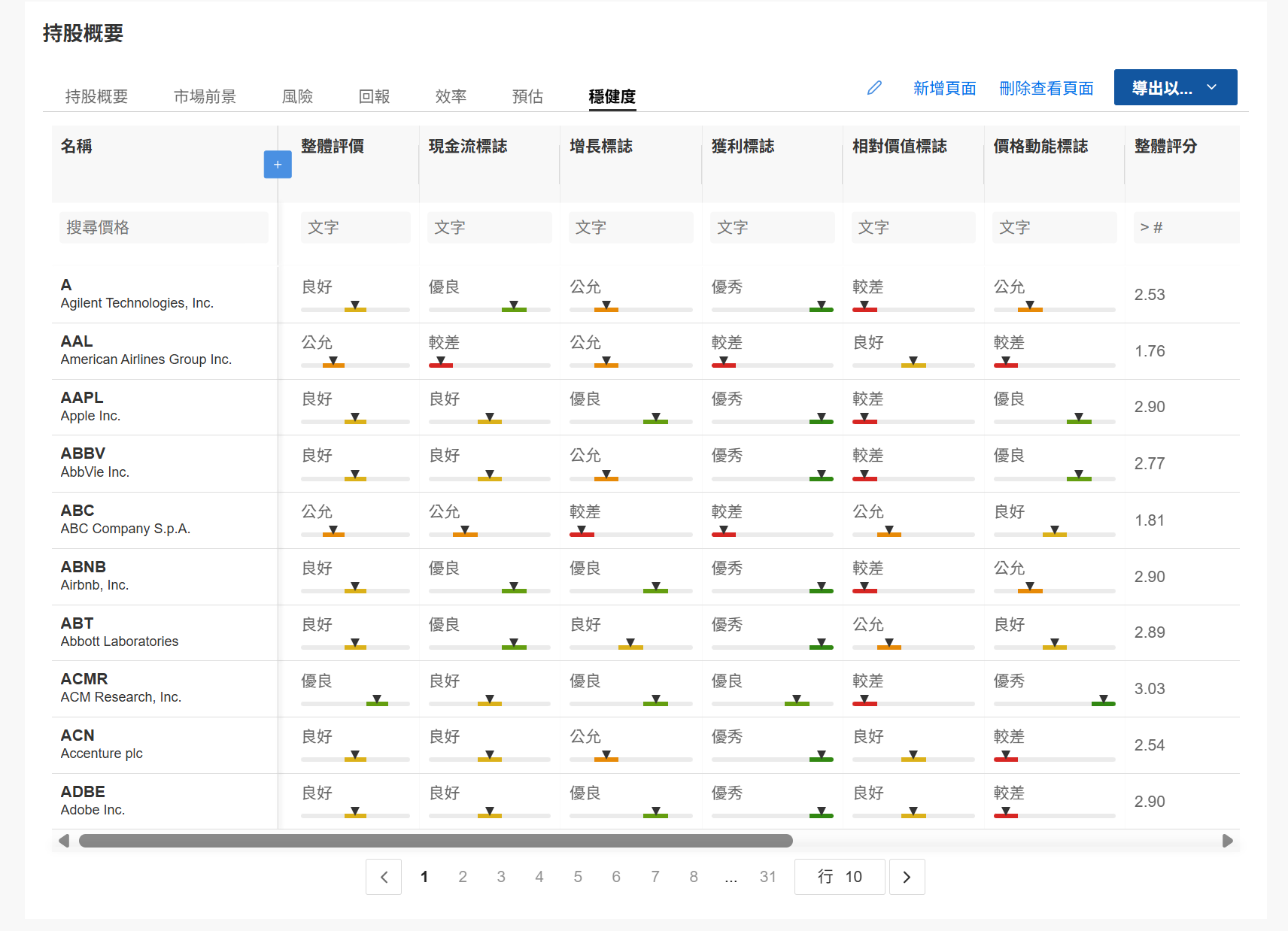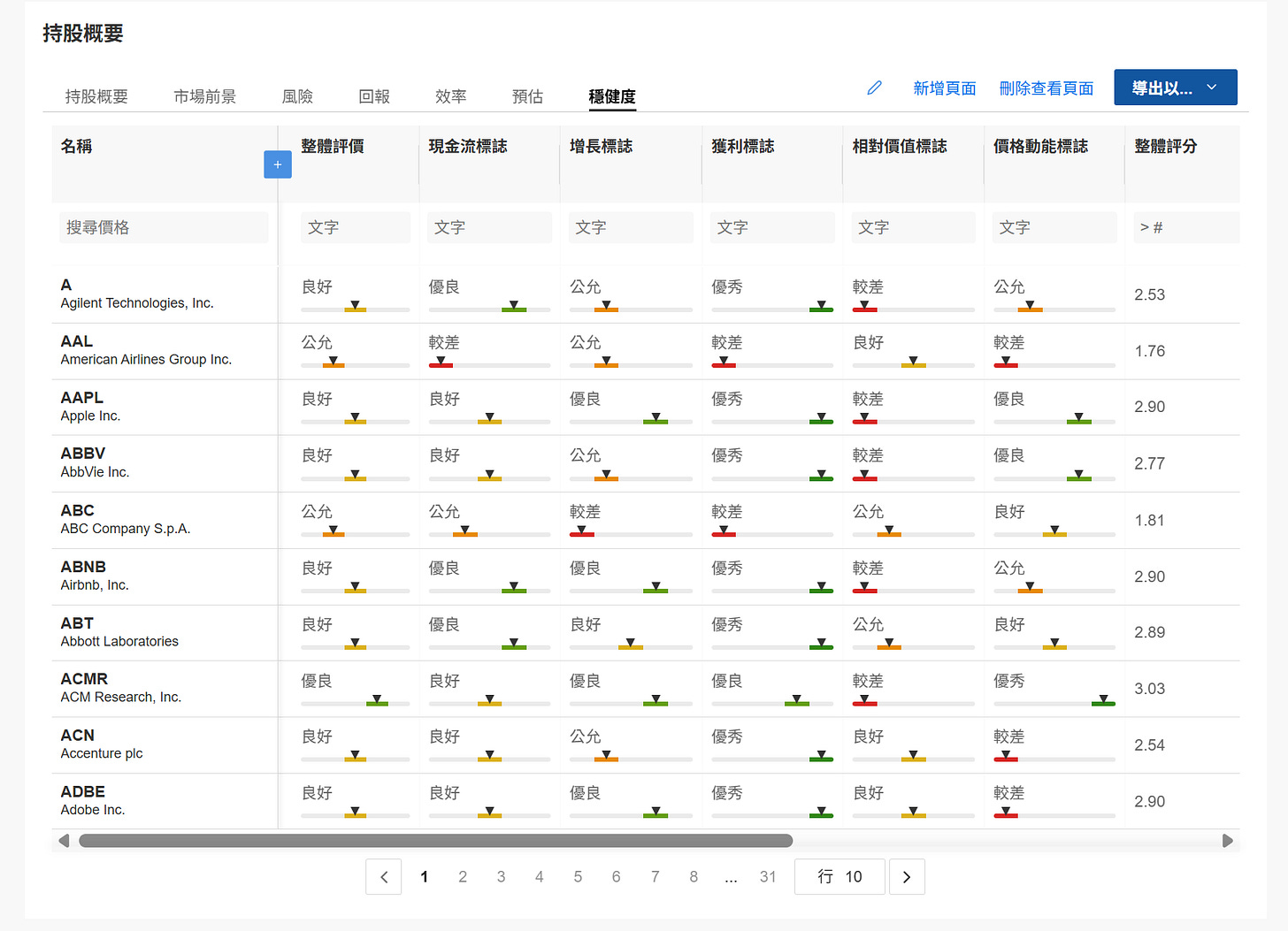 除了績效比較之外,我會特別看「穩健度」頁面。