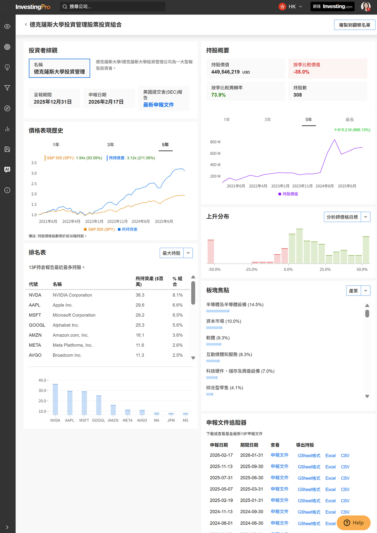 在這篇文章中,我會透過 InvestingPro 的幾個功能,分析校務基金背後真正重要的邏輯——資產配置的結構設計,以及它如何決定長期投資的成敗。