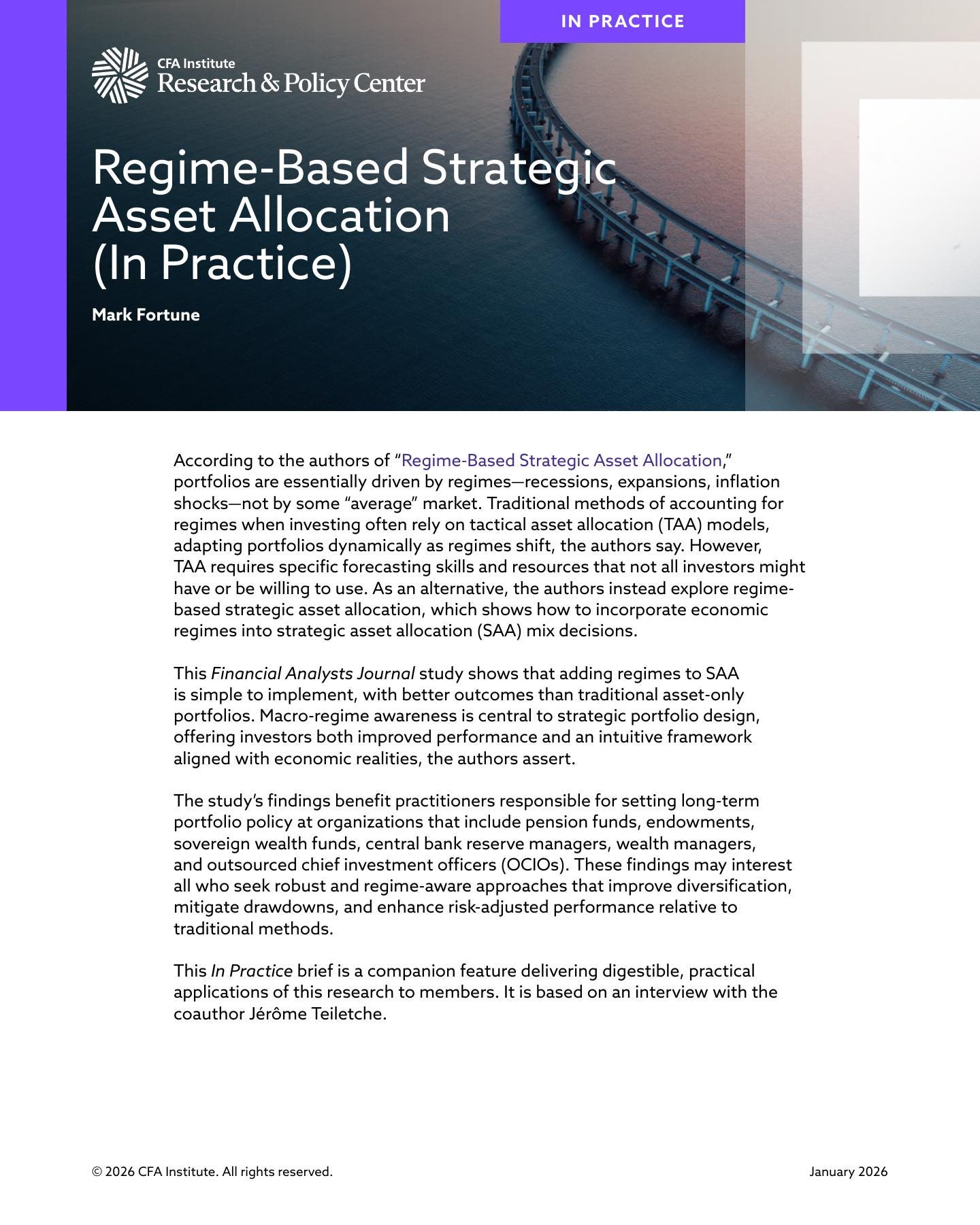 CFA Institute. (2026). In Practice: Regime-Based Strategic Asset Allocation.