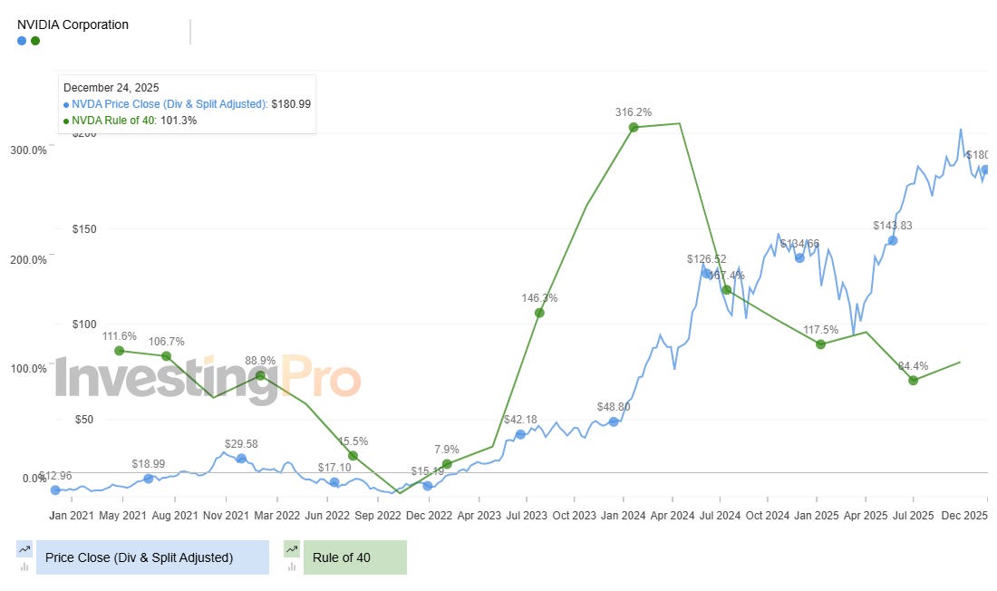 在 InvestingPro 中,Rule of 40 被轉換為可視化時間序列,這是非常重要的功能。