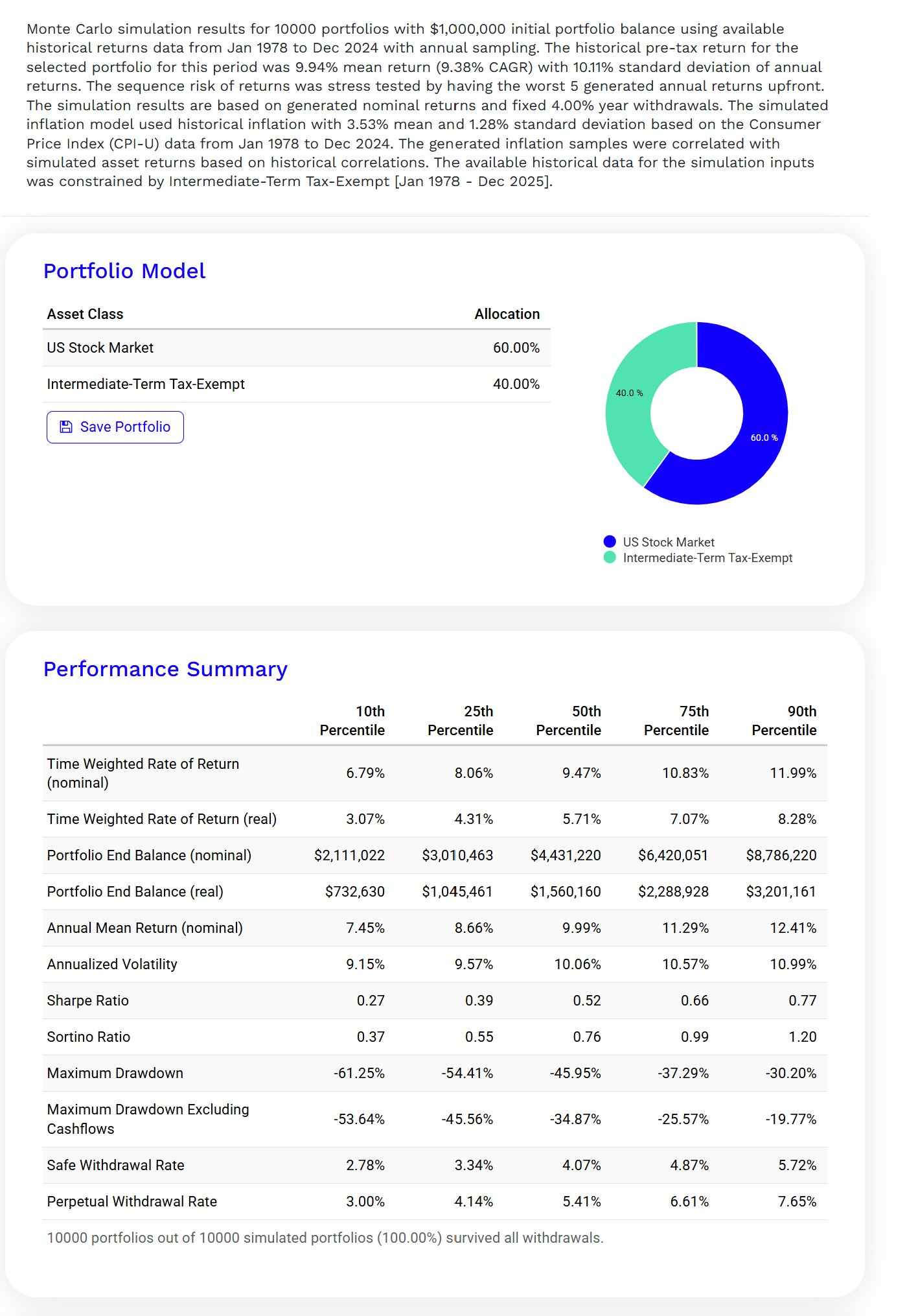 40% 股票 / 60% 債券,5th percentile PWR 卻接近 5%