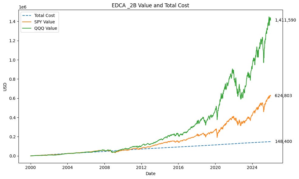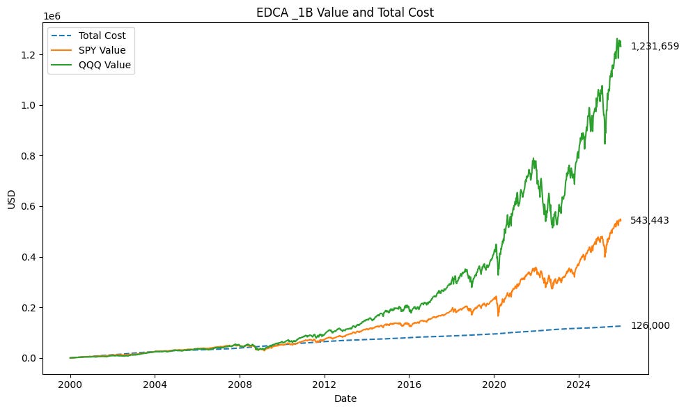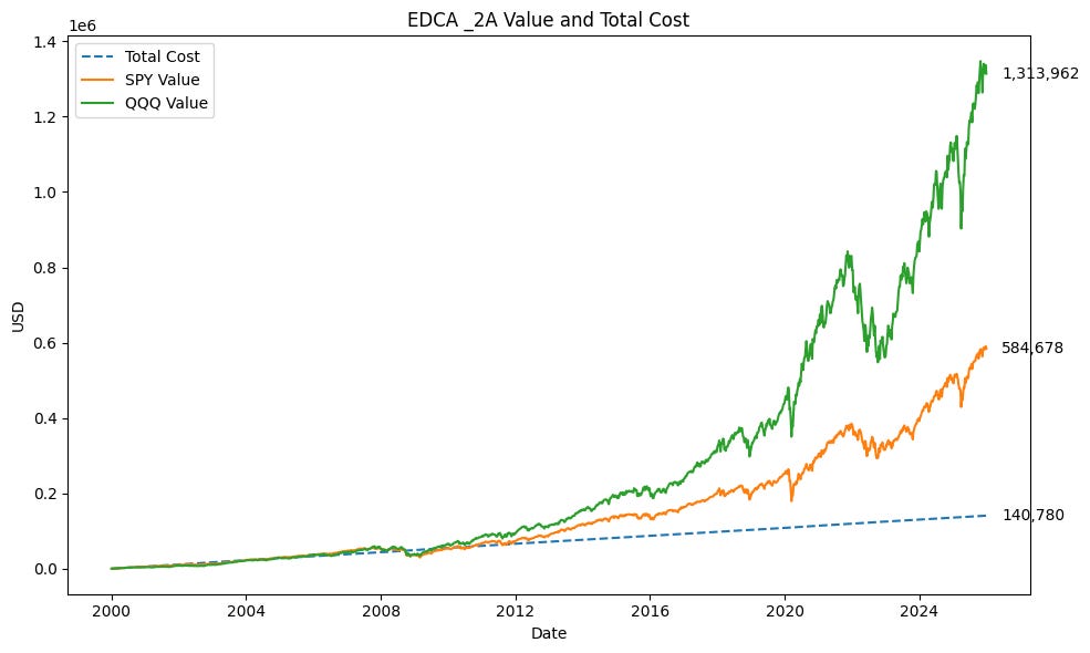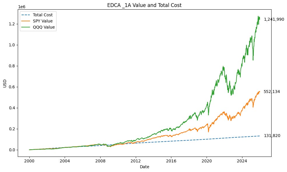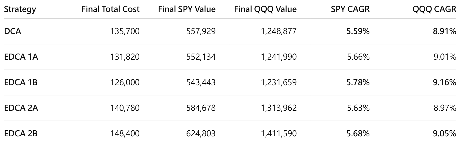 第二,EDCA 的效果高度依賴資產波動特性,在 QQQ 這類高波動資產上,差異遠比 SPY 明顯。