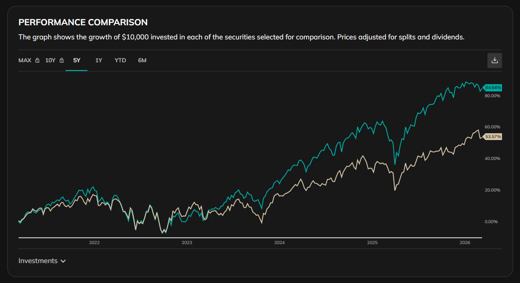 但在 2013 之後,SPY 開始明顯領先。原因非常明確:Mega-cap 科技公司崛起。這些企業的成長速度遠遠超過整體市場。而在市值加權指數中,這些公司權重會自然上升。因此 SPY 的報酬被這些企業放大。