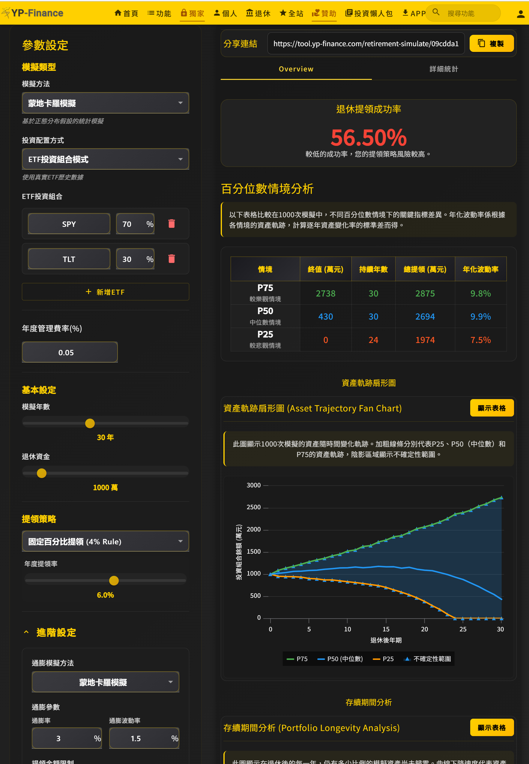 YP-Finance 模擬器:https://tool.yp-finance.com/retirement-simulate
