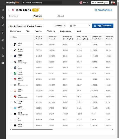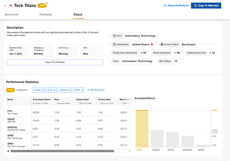 登入 ProPicks,選擇 Tech Titans 策略。
